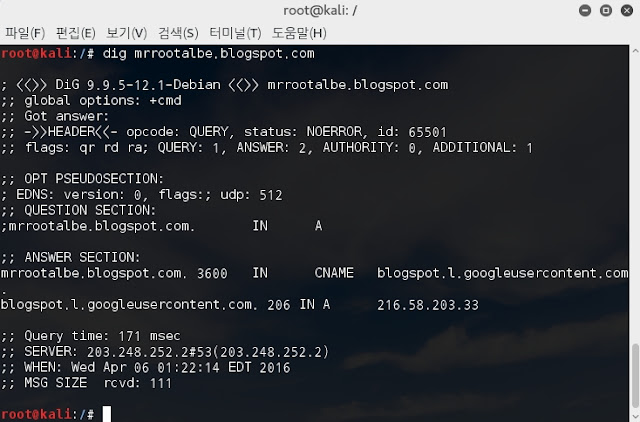 리눅스에서는 바로 dig 명령어를 통해 확인해볼 수 있다.